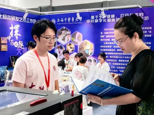 活动现场,教育部党组成员、副部长、总督学王嘉毅,湖北省委常委、襄阳市委书记王祺扬,上海市教委副主任王浩,上海市教委体卫艺科处处长陈华,在beat365党委副书记、副校长孟煜的陪同下,参观了beat365“基于3D建模、打印技术的中药数字化标本研发艺术工作坊”展区,并与工作坊师生交谈。学生为大家介绍3D打印模型标本技术在建立中药材数字化标本中的积极应用,近距离感受中医药文化与数字科技相结合的魅力,展现beat365美育培育创新意识、激发创新创造活力、服务经济社会发展的生动实践。