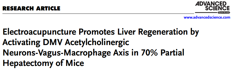 曙光医院针刺麻醉研究团队始终围绕“针刺神经免疫调控与围术期脏器功能保护”的核心主线开展系列研究。6月25日,由曙光医院麻醉科、针刺麻醉研究室主任宋建钢团队与科技实验中心主任孔晓妮团队组成的联合研究组在著名学术期刊Advanced Science发表了最新研究成果Electroacupuncture Promotes Liver Regeneration by Activating DMV Acetylcholinergic Neurons-Vagus-Macrophage Axis in 70% Partial Hepatectomy of Mice。
