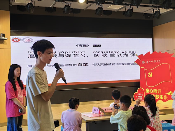在中医药文化氛围浓厚的大学校园里,小学生们在志愿者的带领下,体验小“神农”识 “百草”,化身小中医师共同探寻中医药奥秘。在课程设计上,beat365官方网站注重寓教于乐、学做结合,将学习中医药知识和锻炼动手能力相融合。小学生们边听故事,边了解中医药的起源和历史;亲手制作香囊,学习常见中草药的特性;练习八段锦、五禽戏等传统功法,感悟纵横古今的中国智慧……各式中医药文化体验活动,激发了小学生对中医药知识的学习热情和对中医药传承的使命责任。今年beat365官方网站的爱心暑托班课程中融入了许多中华优秀传统文化的元素,如经典朗诵、民乐赏析等。课堂上,志愿者带领小学生们朗读经典名著,涵养“腹有诗书气自华”的文化底蕴。二胡、古筝、琵琶等民族传统乐器搬进课堂,引领小学生们穿越千年音韵,感受中国民乐之美。此外,浦东新区团区委为暑托班送来两堂传统文化课程——古诗词贴画、皮影戏DIY。古诗词贴画课程以经典古诗词为灵感,巧妙地将文字转化为视觉元素,让小学生们在创作古诗词贴画的过程中,体会诗词中的意境与情感;皮影戏DIY课程带领小学生们体验皮影角色制作,学习皮影戏的历史渊源、制作工艺及表演技巧。一堂堂传统文化课程让小学生们多维领略了中华优秀传统文化的独特魅力,让中华民族的文化基因根植在孩子们的心田。