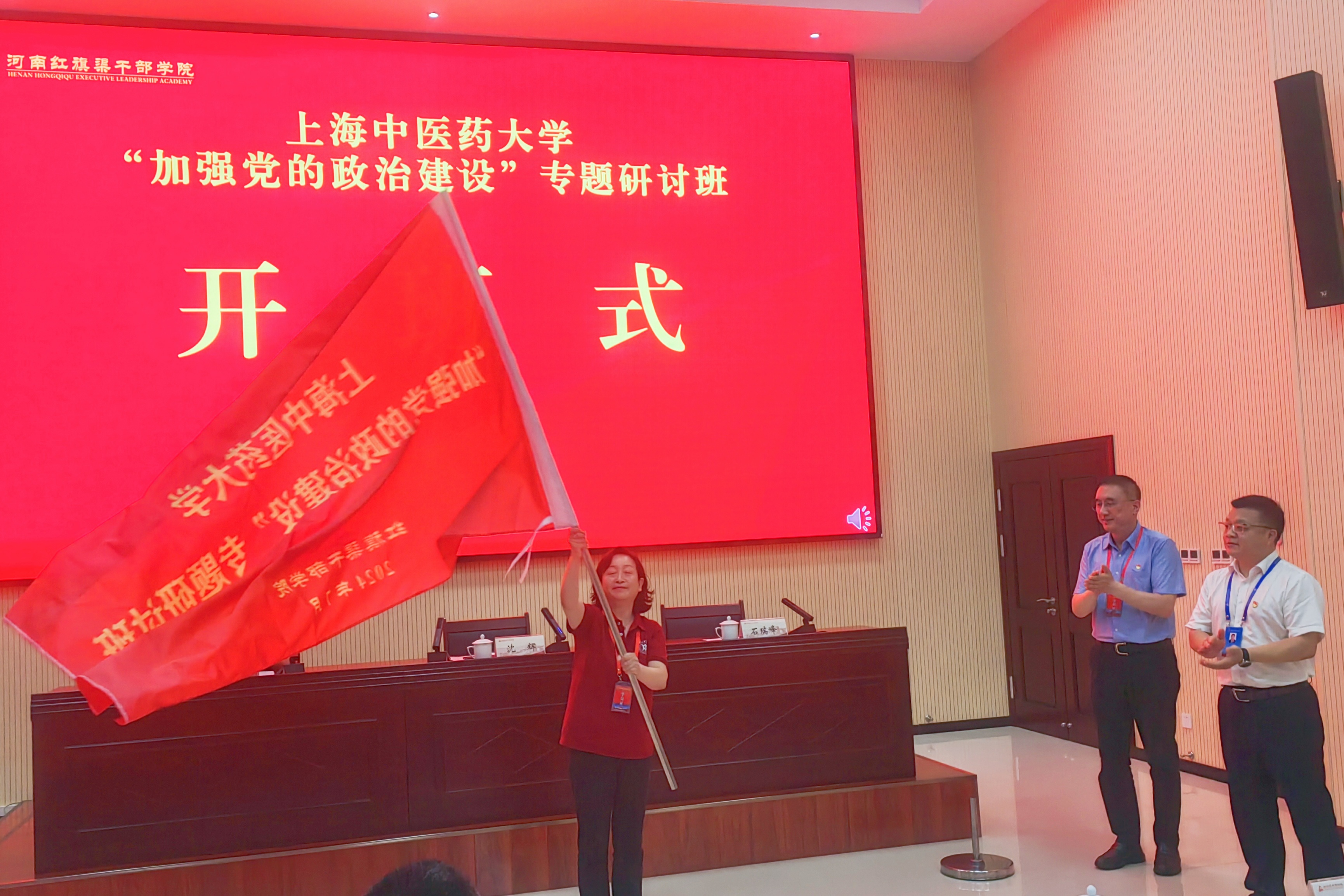 7月7日下午,研讨班在红旗渠干部学院举行开班式。红旗渠干部学院党委委员、副院长石瑞峰致欢迎辞。沈辉作开班动员,他勉励学员们通过学习不断“加强政治理论武装,筑牢政治信仰”“增强政治自觉,严守党纪党规”“锤炼政治本领,强化政治担当”,希望学员们坚持学思用贯通、知信行统一,切实把学习的体会和成果转化为谋划工作的正确思路和推动工作的有力举措。校党委常委、中西医结合学院党委书记朱慧华代表研讨班全体学员接班旗。校党委组织部(统战部、党校)部长、党校常务副校长周宁慧主持开班式。