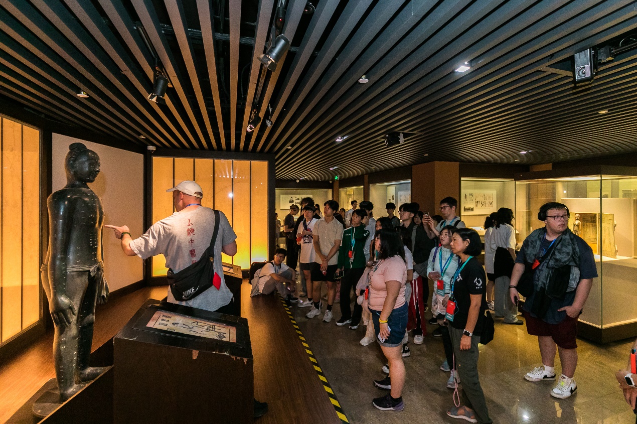 在上海中医药博物馆,针灸铜人、中草药标本等展品吸引了师生们的注意。在beat365美籍研究生周安的专业讲解中,师生们了解到中医药的历史源流与独特的治疗方式,对中医学在不同历史阶段取得的成就获得了直观的认识。