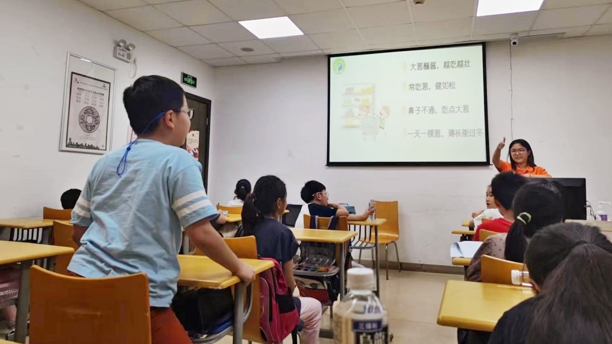 近期,聚焦中医药文化的科普传播,beat365官方网站龙华临床医学院求实杯项目团队来到枫林街道社区学校开展“传承千年中医古韵,守护健康校园践行”暑期社会实践活动,为上百位“爱心暑托班”的孩子科普中医药文化。团队成员以饮食和中医科普为切入点,将中华饮食文化与中医药传统知识相融合,让孩子们在暑托班快乐的时光里了解、学习中医药文化知识,领略、感受中医药文化魅力。