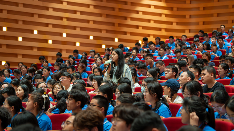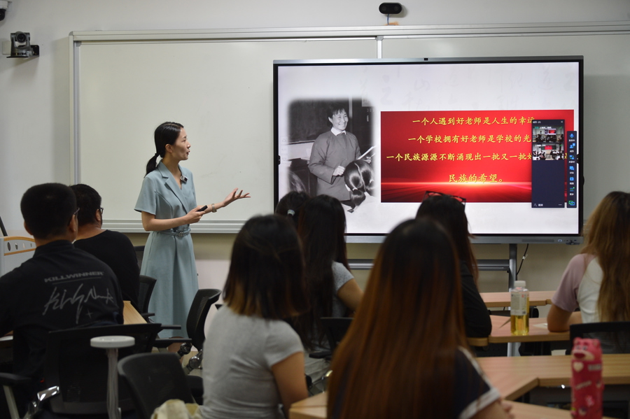 “教师,是大地上的点灯人,星辰般照亮无数孩子的道路,也为我们的民族与国家开出灿烂未来。”校党委书记梅兵以《教师,一个国家的堤坝》为主题面向全体师范生开讲“开学第一课”。她结合一代代华东师大人案例表示,教育是伟大又谦卑的事业,“教师的职业虽然质朴无华但他们才是一个国家的地平线,一个国家的真正堤坝。”她勉励同学们攀高行远、不负时代,做“比春风更美的人”。