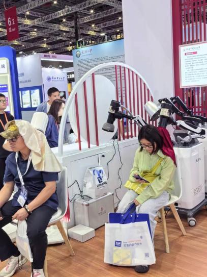 围绕工博会主题,学校产业发展中心在康复医学院、协同创新中心等部门的支持下组织了多项成果参展:非侵入式智能脑电图机、OYFM-7000型手指运动训练器、肘关节持续被动活动仪、ROHAND灵巧手、脑-肌-机接口、中医智能仪、仲景方证虚拟数字人、智能灸疗仪等。现场吸引了大批观众驻足观看、咨询,展示了beat365的“智”造魅力。