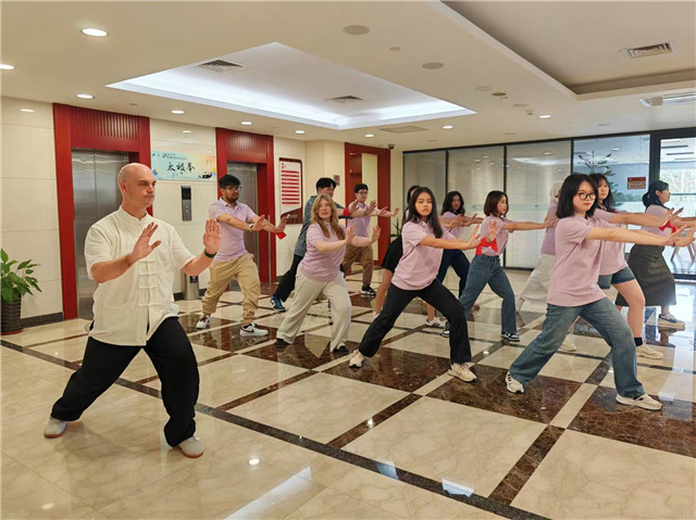 在太极拳体验环节,国际学生们一展身手,在beat365官方网站美国籍留学生周安的带领下缓缓起势,一招一式间,体会“以柔克刚”“四两拨千斤”的武学智慧。只有16岁的蓝光智来自泰国,是上海中医院大学中医学专业2024级本科新生,他的第一个体验项目就是太极。蓝光智虽然才开学不久,但他从小就知道中医。“爷爷也是中医,他还不收钱,坚持用中医技术帮助病患解除病痛,我也想成为这样对世界有用的人。”