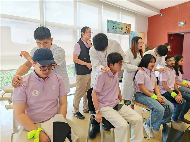 石氏伤科,是享誉全国的中医骨伤科流派之一,具有150多年的传承历史,入选国家级非物质文化遗产传统医药项目。在石氏伤科展台前,国际学生们不仅观看了石氏伤科“十二字”手法演示,还能亲身体验到中医推拿、正骨等外治疗法带来的感受。“这真是太神奇了,我感觉整个身体轻松了许多,中医的力量真是不可小觑!”,许多留学生从一开始推拿受力时的酸爽表情,到几分钟后不想结束体验,将前来演示和推介的曙光医院骨伤科医生逗得不行,不少留学生还加了医生的微信,准备日后挂门诊做日常保健。