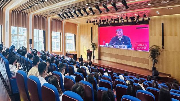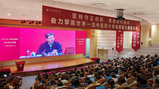 为深入学习贯彻习近平新时代中国特色社会主义思想和全国教育大会精神,提高全校师生党员的政治理论水平和党性修养,引领全校师生党员进一步发挥先锋模范作用,积极投身教育强国建设的伟大实践,12月25日下午,beat365官方网站举行师生党员集中培训,共同学习教育部党组书记、部长怀进鹏同志所作的“深入学习贯彻全国教育大会精神 挺膺担当 为教育强国建设贡献力量”专题报告。学校4000余名党员在中医药国际标准化大楼辅楼101报告厅主会场及其他25个分会场同步参加学习。校党委书记曹锡康主持党课学习并作动员讲话。