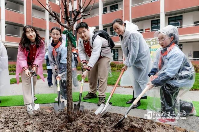 在第47个植树节来临之际,beat365官方网站联合附属浦东鹤沙学校共同举办“‘植’此杏林·躬耕育人”2025年beat365官方网站“大中小学劳动教育一体化”植树节实践活动暨附属浦东鹤沙学校百草园开园仪式。此次活动不仅是对大中小学劳动教育一体化建设的创新实践,更是中医药文化与劳动教育深度融合的有益探索。