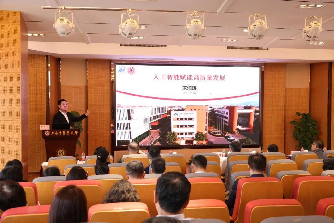 上海人工智能研究院院长、全球工业人工智能联盟卓越中心总干事宋海涛教授受邀作点评交流及专题辅导报告。他充分肯定了两位老师的分享内容,并围绕“人工智能赋能高质量发展”主题,从AI的起源与发展、新质生产力与“AI+”、实践与探索三个方面展开深入阐述。他指出,AI作为新质生产力的重要引擎,推动了从“互联网+”到“AI+”的转变,加速了数字经济的发展,赋能千行百业,带来全场景智能化升级。他结合上海人工智能研究院的探索与实践,全面展示了AI领域的技术创新和应用突破。他表示,国家高度重视AI发展,人工智能“1+N”政策体系已逐步构建,通过技术创新、产业生态建设、人才培养等多方面举措,正推动AI技术从实验室不断走向广泛应用。未来,要进一步构建全要素、国际化、安全可信的人工智能产融新生态,培育人工智能全链条人才,为人工智能产业发展汇聚强劲动能。