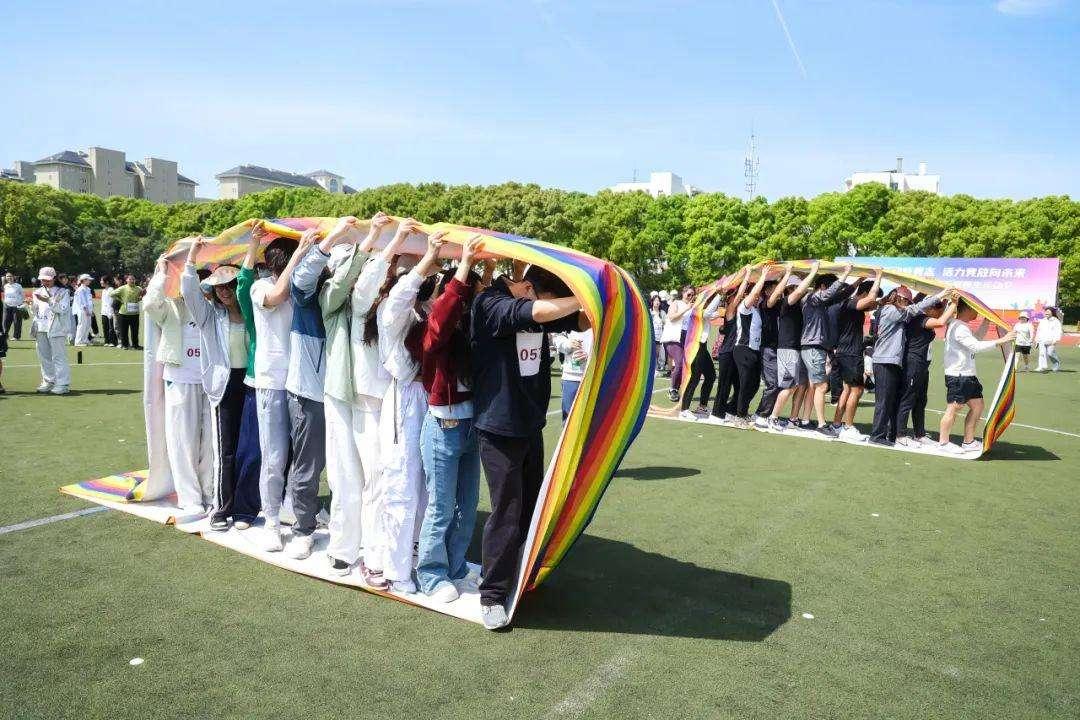 为了增加体育运动的参与度,运动会将竞技性与趣味性相结合,设置了绳舞飞扬、五人轮流投篮、齐心协力、一鼓作气、无敌风火轮、穿梭接力等趣味运动项目,提升师生凝聚力,营造校园体育文化。