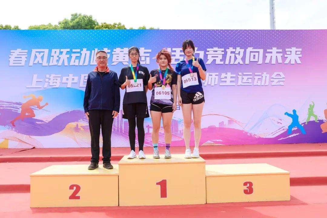 校党委副书记、工会主席沈辉为100米决赛中斩获金牌、银牌、铜牌的运动员颁奖。
