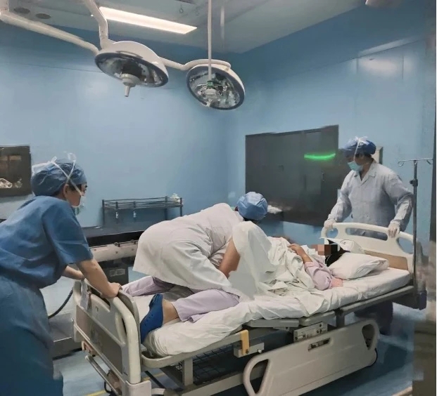 “保持侧卧,我托住宝宝!”小瞿半跪上床,右臂如钢支架般撑起产妇臀部,掌心牢牢托住胎头,防止脐带进一步受压。她的护士裤很快被浸透,膝盖在床面压出红痕,却始终保持着托举姿势。转运至手术室的途中,她维持托举动作长达9分钟。直到主刀医生完成手术,在场医护悬着的心终于落地。这场与死神的赛跑中,小瞿用专业与毅力为胎儿撑起了一把“生命保护伞”。