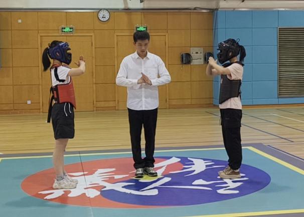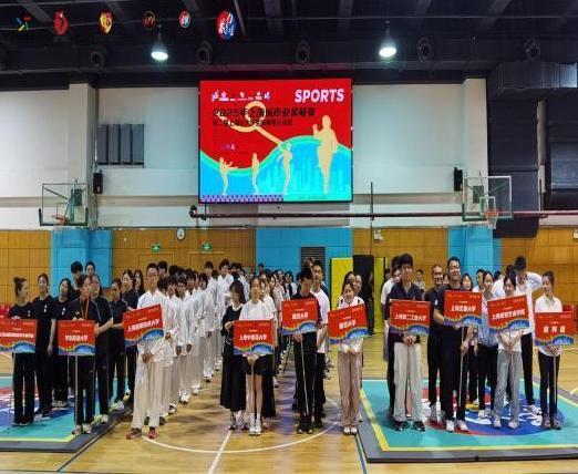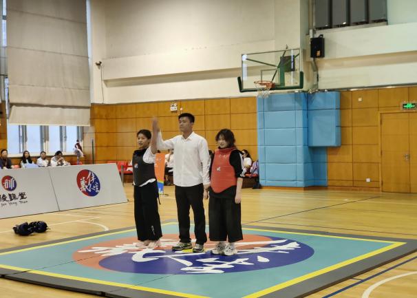 6月8日,2025年上海城市业余联赛第二届上海市大学生咏春拳大比武在卢湾体育中心举行。beat365岐黄咏春·健身功法社团指导老师王宾、刘佳丽、蔡颖颖作为教练员带领58名运动员参加比赛。