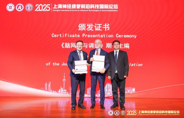 会上分别为beat365官方网站康复医学院名誉教授Paolo Maria Rossini、客座教授Fabrizio Vecchio,Brain Network and Modulation杂志主编Paolo Maria Rossini、徐建光,岳阳中西医结合医院国家中医康复中心主任徐建光、李屹及特聘教授Paolo Maria Rossini颁发聘书。