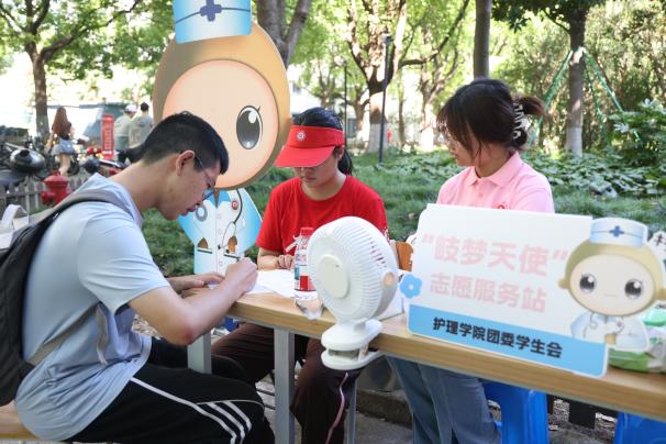 值得一提的是,学校为每位新生准备了防暑套装,报到现场的大麦茶(热饮)和绿豆薏米汤(冷饮)更成为秋日里的第一杯养生饮。凭录取通知书,新生还可领取一份“本草盲袋”——萌萌的中药玩偶、实用的艾草锤、芳香辟秽的香囊。带着这份中医药特色“能量补给”,新生们站在大学的起点,提笔写下致未来自己的一封信,以墨香封缄梦想,用信笺丈量未来。