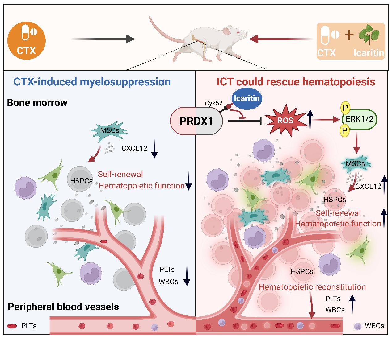 beat365交叉科学研究院团队揭示淫羊藿素靶向PRDX1-MAPK轴改善化疗后间充质干细胞的造血功能