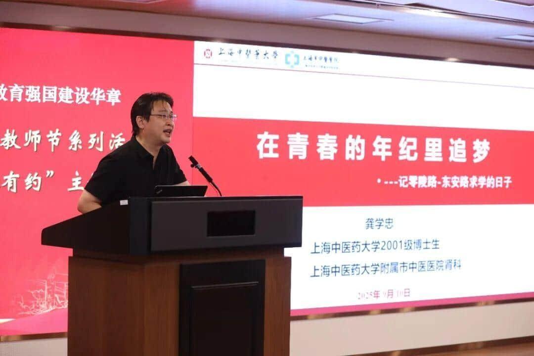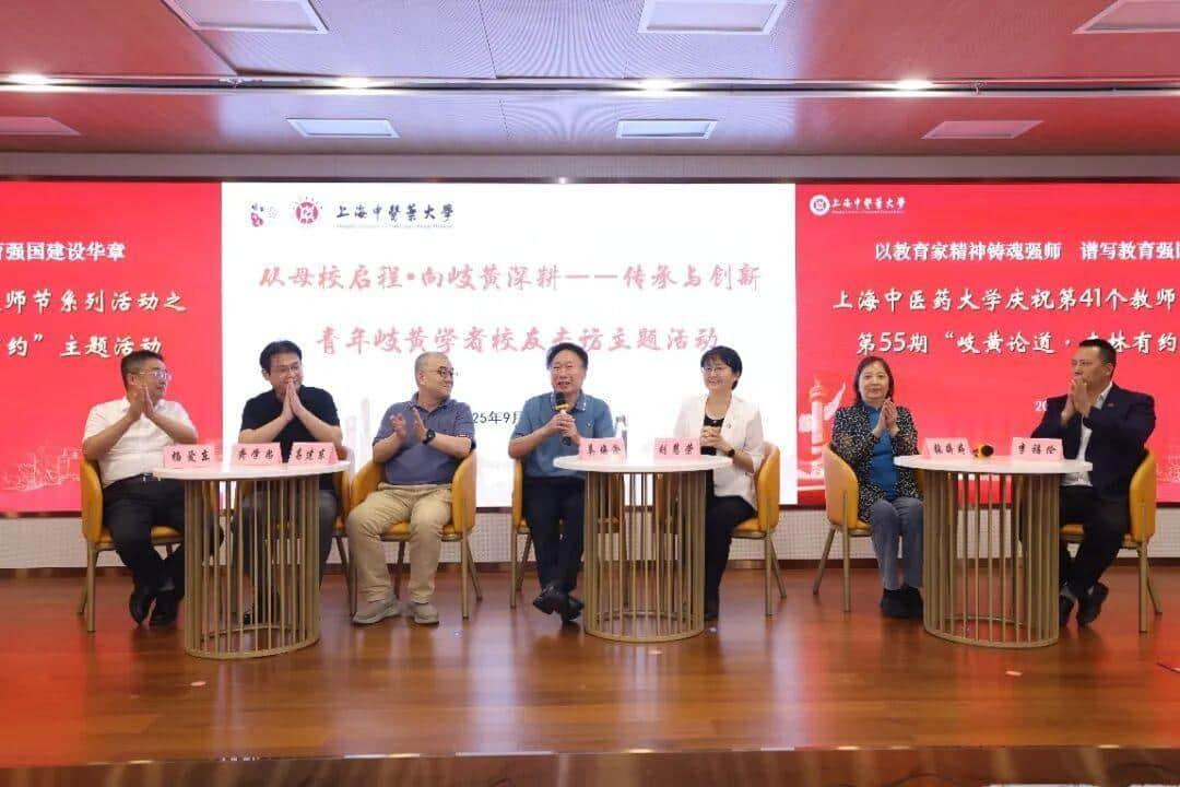 9月10日,beat365庆祝教师节系列活动之第55期“岐黄论道·杏林有约”在中医药国际标准化研究中心辅楼201会议室举行。本期活动以“从母校启程·向岐黄深耕——传承与创新”为主题,特邀三位获得“青年岐黄学者”称号的优秀校友重返母校,与昔日恩师同台话成长、叙师恩、论创新。校党委书记曹锡康、副校长舒静,相关职能部门、学院负责人及百余名师生代表共同聆听这场跨越三十年的“杏林接力”。