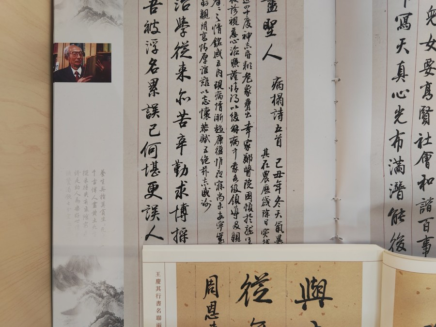 在“岐黄墨韵・师道匠心”展览上,也有一张王庆其硬笔手书的膏方,被龙华医院收藏。另一幅"学大医精诚,觅千金要方"对联作品,取材于孙思邈《备急千金要方》的医德思想,体现中医"德术并重"的育人理念。“诊病识得‘精气神’,则立方遣药切中肯綮;临池若得‘精气神’,则运笔着墨心手相应。”王庆其笑言,“只要井打得深,地下水是相通的。”同为中华优秀传统文化,学医习书,可谓同理。