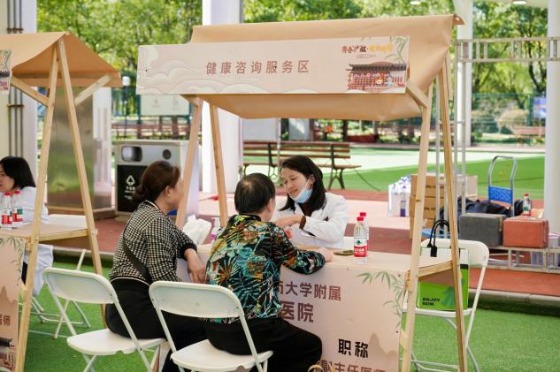 集市现场,健康咨询、中医体验、科普讲座、互动游戏等板块人头攒动,“沉浸式”体验成为关键词。来自上海市“医苑新星”的青年医师和beat365官方网站9家附属医院的医务青年志愿者们,带领市民一路“玩转”中医——从望闻问切到针灸推拿,从药食同源饮品试饮到三伏贴、耳穴压豆、火龙罐等技法体验,再到中医药文创产品展示……传统医学科、治未病科、康复医学科等二十余个专科以轻松有趣的方式“组团出道”,让市民在打卡中感受“防—治—康—养”全链条的中医药魅力。