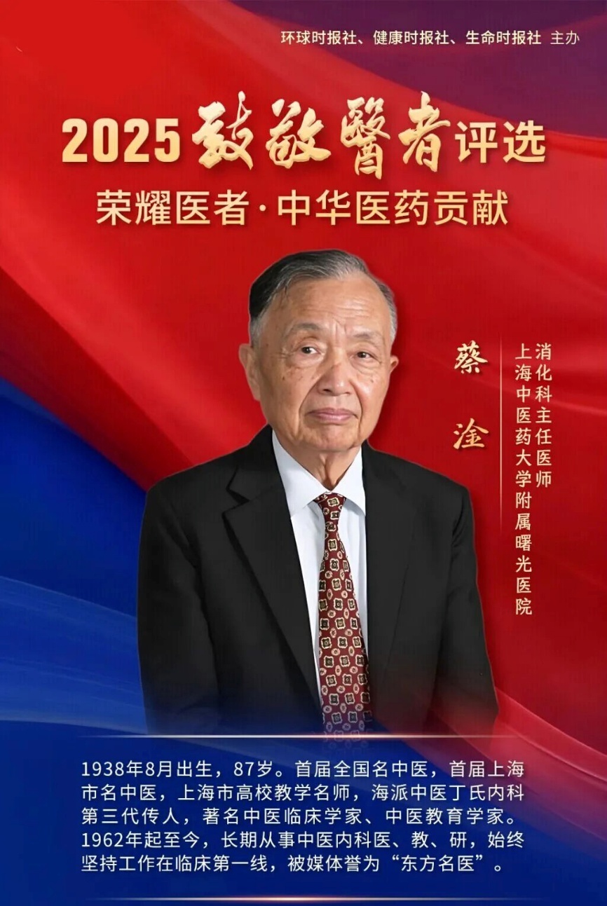 11月28日,由环球时报、健康时报、生命时报共同主办的“2025致敬医者盛典”在人民日报社举行。会上发布了“荣耀医者”“国之名医”两个榜单,旨在表彰医术精湛、医德高尚、医风卓越的典范医者代表。beat365附属曙光医院蔡淦教授荣获“荣耀医者·中华医药贡献”奖,附属龙华医院陈跃来教授荣获“国之名医·卓越建树”奖。