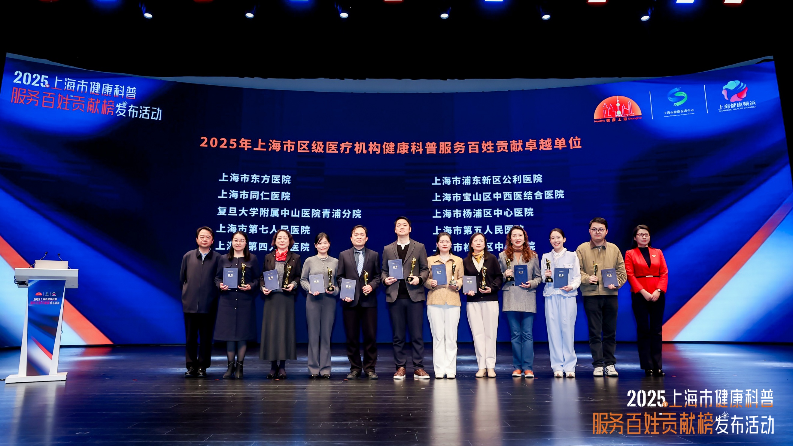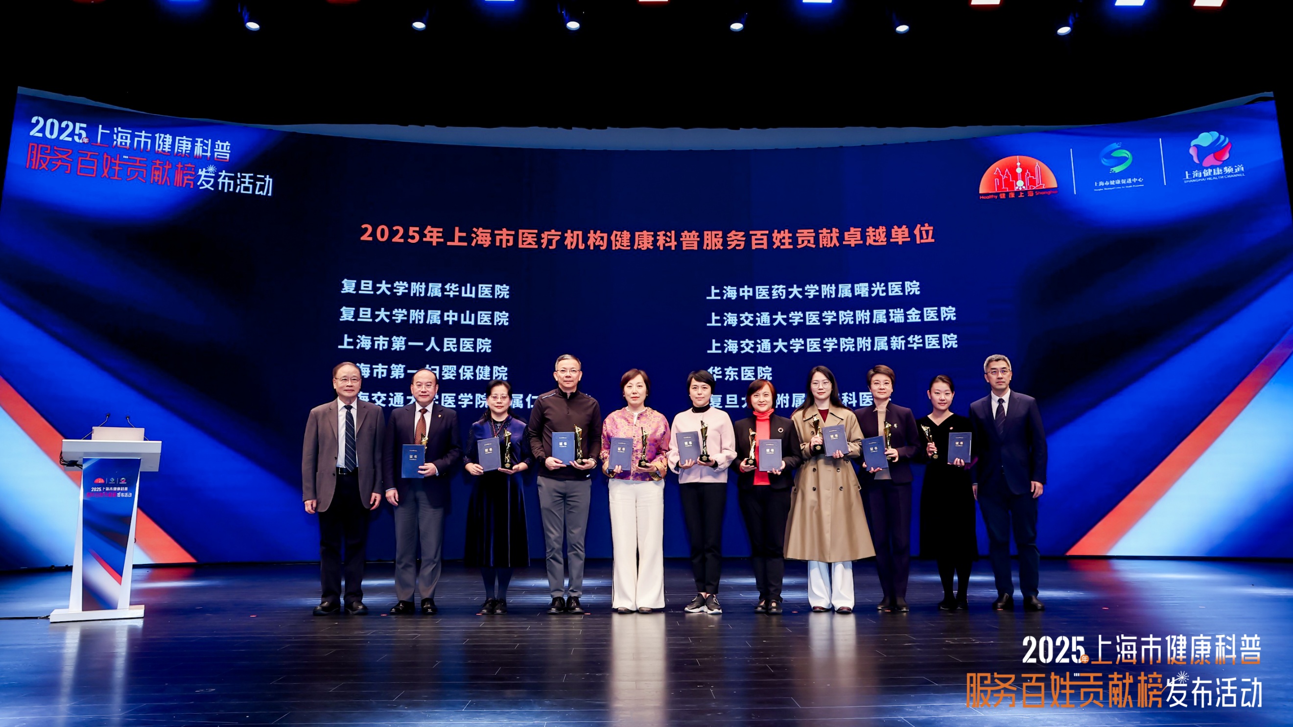 12月11日,由上海市卫生健康委员会、上海市爱国卫生运动委员会办公室主办的2025年上海市健康科普服务百姓贡献榜发布活动在上海商城剧院举行。作为健康上海建设的创新举措,此次发布的榜单涵盖医疗机构、社区卫生服务中心、医务人员等多个维度,旨在通过“立功竞赛”形式,激励全市医疗机构和医务人员投身健康科普事业,为2500万市民健康服务。活动公布了2025年上海市健康科普服务百姓贡献单位与个人榜单,beat365系统多家附属医院和医务人员上榜。