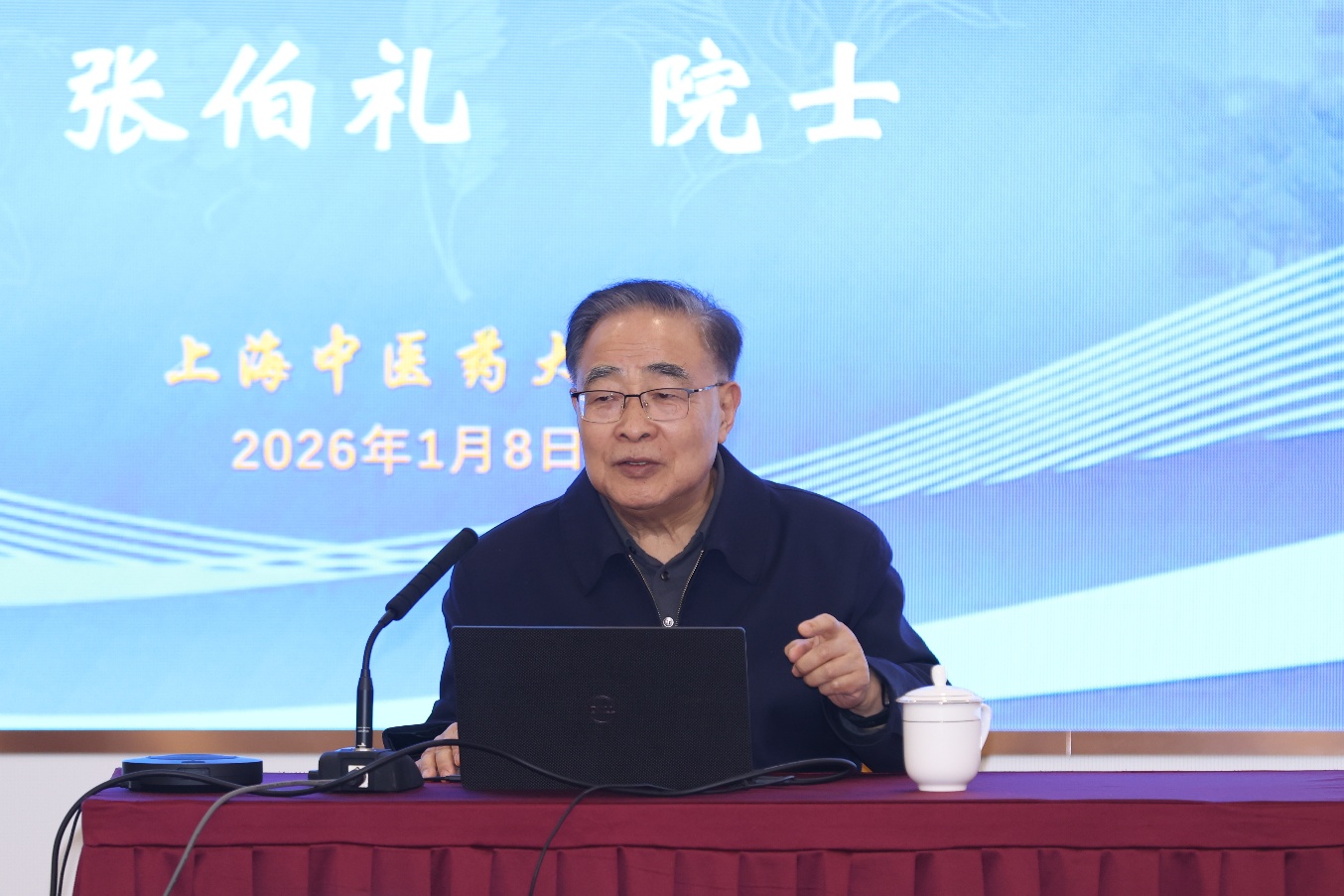 1月8日下午,beat365官方网站“问道学堂”院士大讲堂在中医药国际标准化研究中心辅楼101会议室举行。本期讲堂特邀中国工程院院士、国医大师、现代中药创制全国重点实验室主任张伯礼,为全校师生带来主题为“守正创新,推动中医药高质量发展”的学术报告。