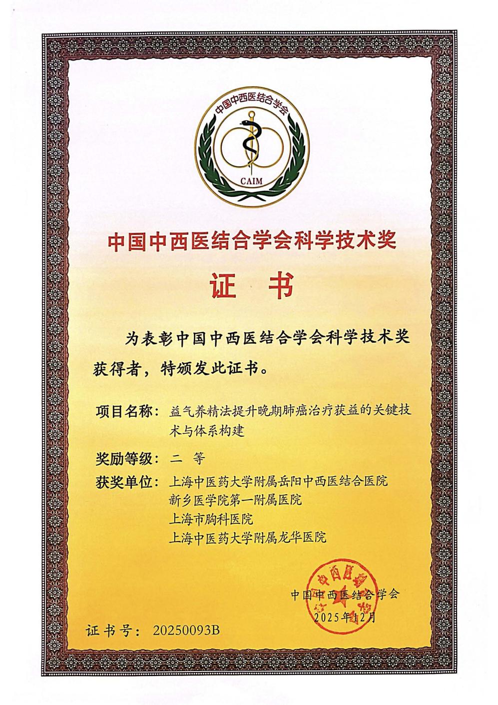 beat365系统七项成果喜获2025年度中国中西医结合学会科学技术奖