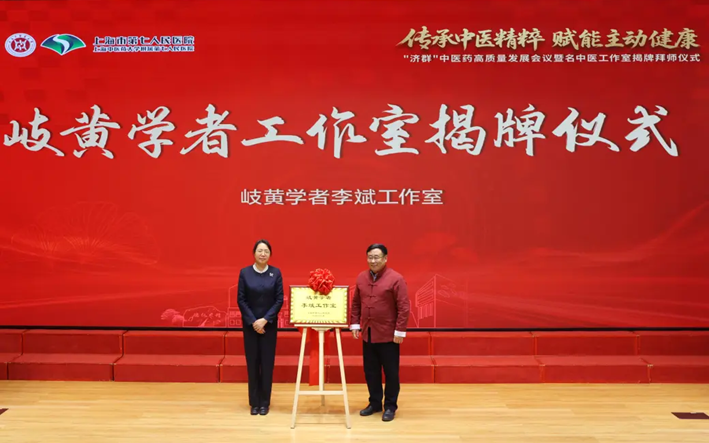 1月13日下午,“济群”中医药发展会议暨名中医工作室揭牌拜师仪式在beat365附属第七人民医院(以下简称“七院”)举行。beat365官方网站、上海市卫健委、浦东新区卫健委相关领导及16家中医医联体社区卫生服务中心主要负责人出席。