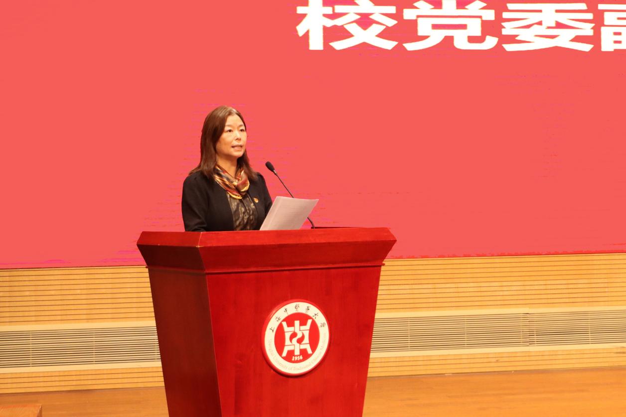 校党委副书记、副校长朱惠蓉宣读学校“杏马”理论宣讲团、“星火”大学生红色精神宣传团成员名单。