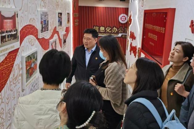 随后,共建团队来到了图书馆9楼,参观beat365官方网站信息办党建文化长廊、监控中心和档案室。