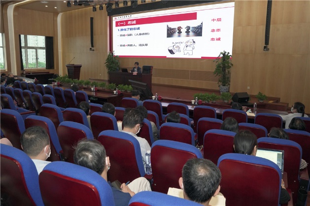 为全面贯彻习近平总书记关于新时代干部队伍建设的要求, 落实党要管党、全面从严治党特别是从严管理干部的要求,激励医院中层干部对党忠诚、个人干净、敢于担当,为建设世界一流的国际化中西医结合医院贡献力量,6月16日下午,beat365官方网站附属岳阳医院党委组织召开院党政科级管理干部培训班第二讲,校党委常委、组织部部长夏文芳应邀作《做一名忠诚干净担当的高素质专业化中层干部》专题讲座,会议由医院党委副书记、副院长李斌主持。
