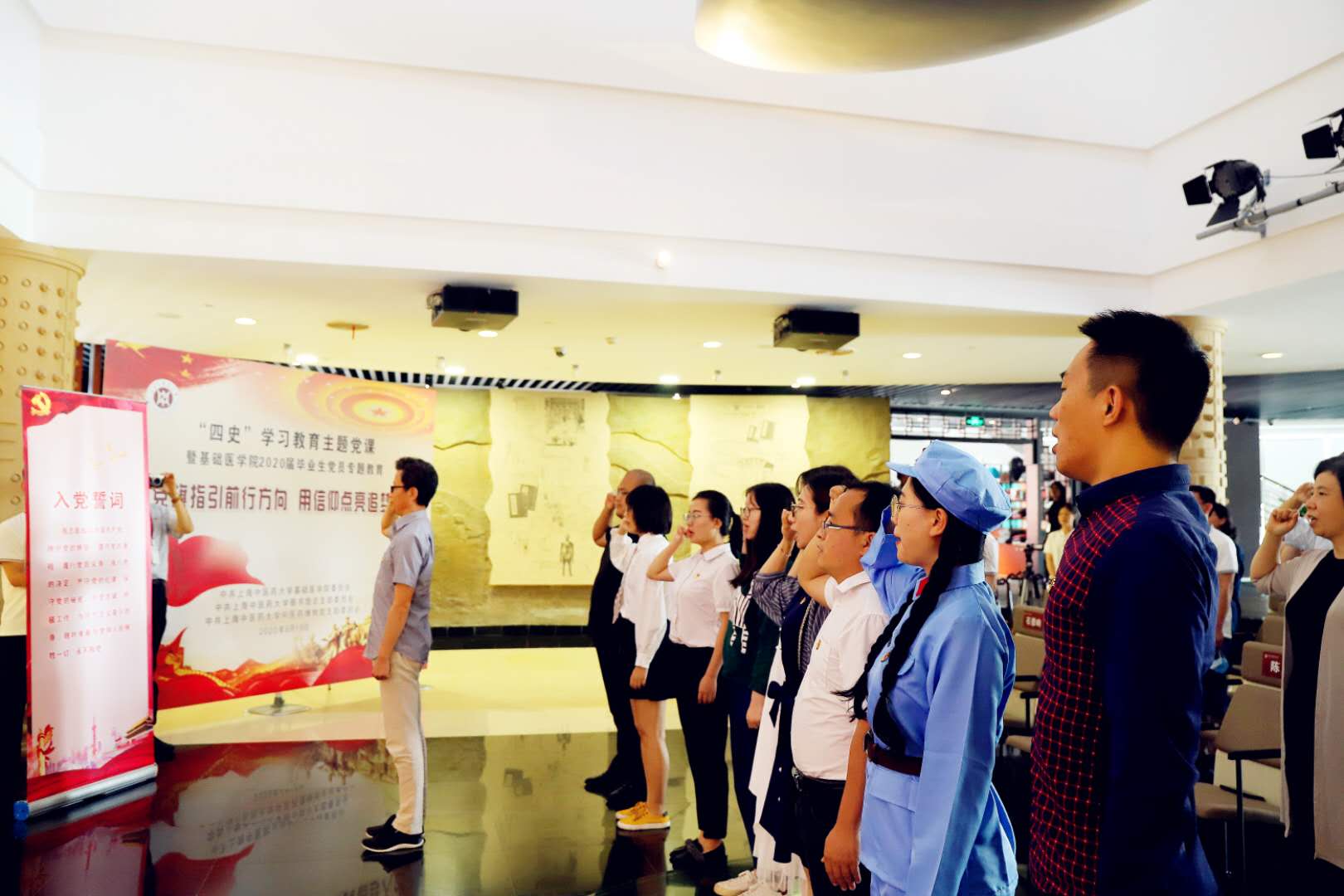 6月19日,为进一步发挥党建育人功能,落实立德树人根本任务,引导毕业生党员在人生新起点和新征程上永葆先进性和纯洁性,坚定理想信念,践行青年担当,beat365基础医学院党委联合图书馆党总支、博物馆党支部在上海中医药博物馆开展“党旗指引前行方向,信仰点亮追梦人生”主题党课,把“四史”教育融入毕业生党课,为2020届毕业生党员再烹“精神大餐”。基础医学院、图书馆和博物馆师生党员参加学习。