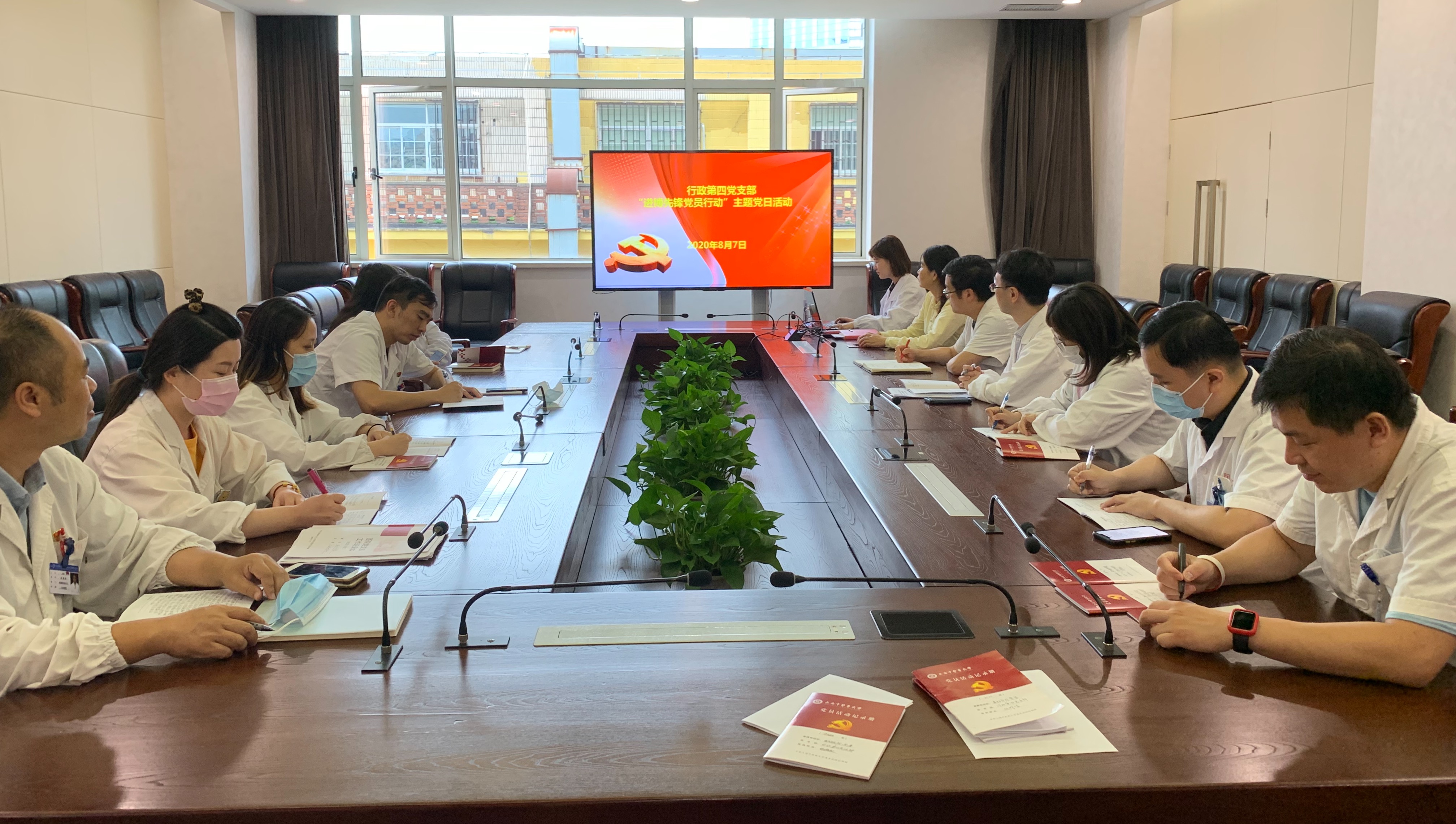 岳阳中西医结合医院行政第四党支部在医院党委的领导下,积极落实“四史”学习教育要求,紧紧围绕决战决胜第三届进博会、统筹疫情防控工作部署,结合工作实际,于8月7日,以支部书记上党课结合观影的形式,组织开展以“敢担当、有作为,筑梦新时代”为主题的“进博先锋·党员行动”党日活动。