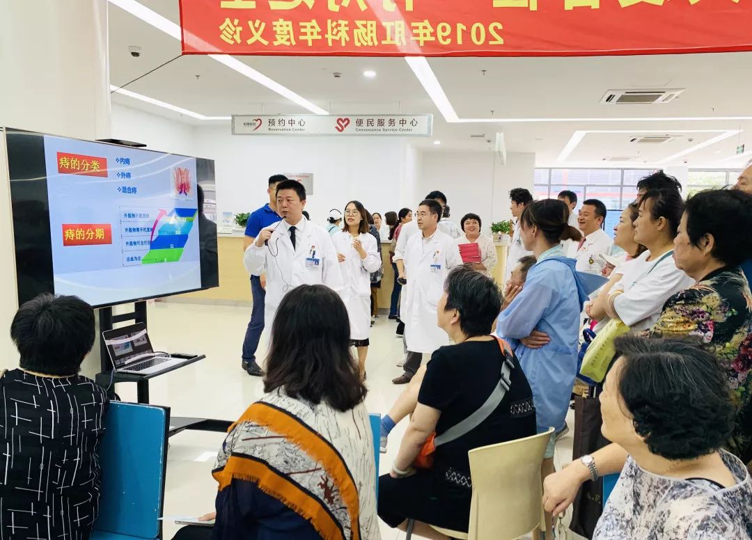 肛肠科王振宜主任介绍了科室的发展历程和特色优势,金炜、吴炯两位副主任医师分别做了痔疮相关疾病知识及目前先进的两种微创治疗方法的科普讲座。