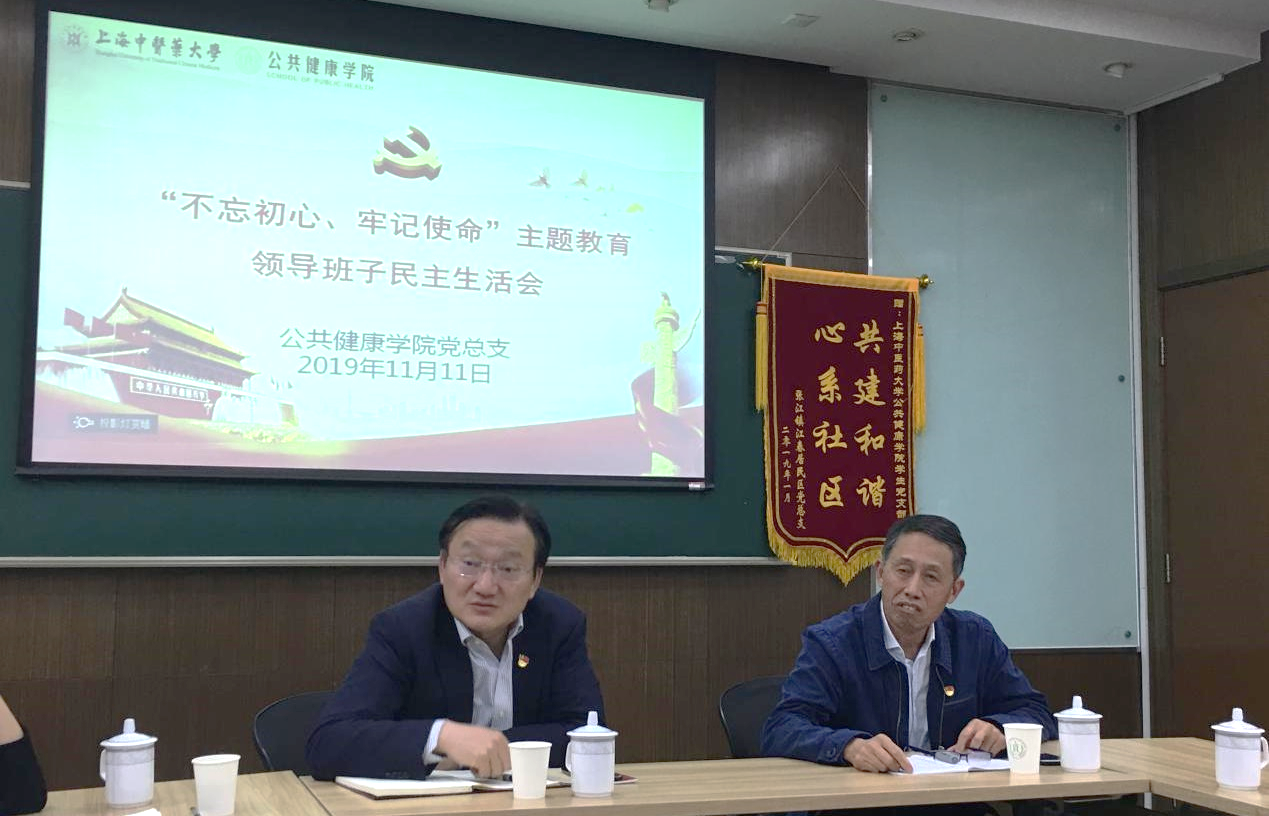 11月11日下午,公共健康学院领导班子召开“不忘初心、牢记使命”主题教育专题民主生活会。校长徐建光出席指导,党委校长办公室副主任张怡、校主题教育第五指导组组长夏国荣、宋莉君参加会议,公共健康学院党总支书记段艳霞、副书记干旦峰、副院长赵海磊、张赟彬及党总支委员、党支部书记、科室主任等十余人参会。