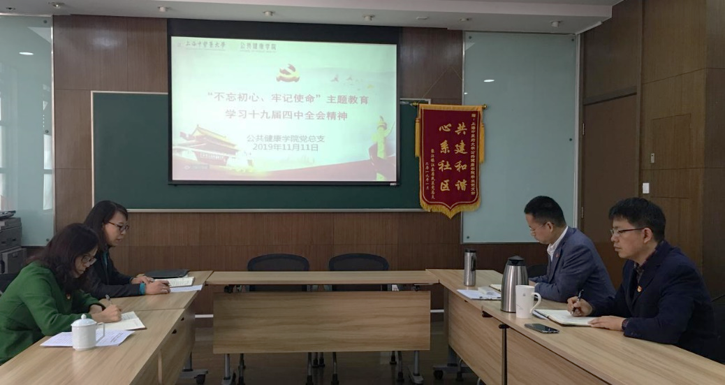 11月11日,公共健康学院领导班子开展“不忘初心、牢记使命”主题教育集中学习,学习领会党的十九届四中全会精神,重点围绕《中共中央关于坚持和完善中国特色社会主义制度、推进国家治理体系和治理能力现代化若干重大问题的决定》,结合高等教育发展、学院实际工作等方面开展集中研讨。