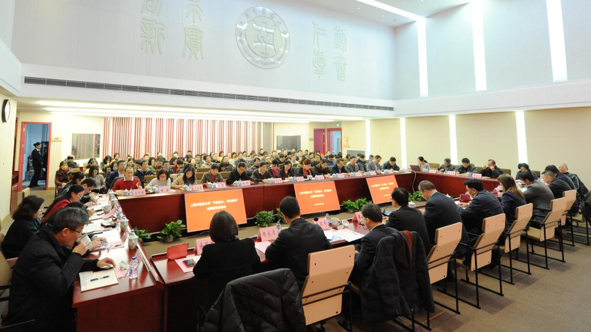 市委“不忘初心、牢记使命”主题教育第十巡回指导组副组长任小文出席会议并讲话。校党委副书记、副校长、校“不忘初心、牢记使命”主题教育领导小组副组长朱惠蓉主持会议。