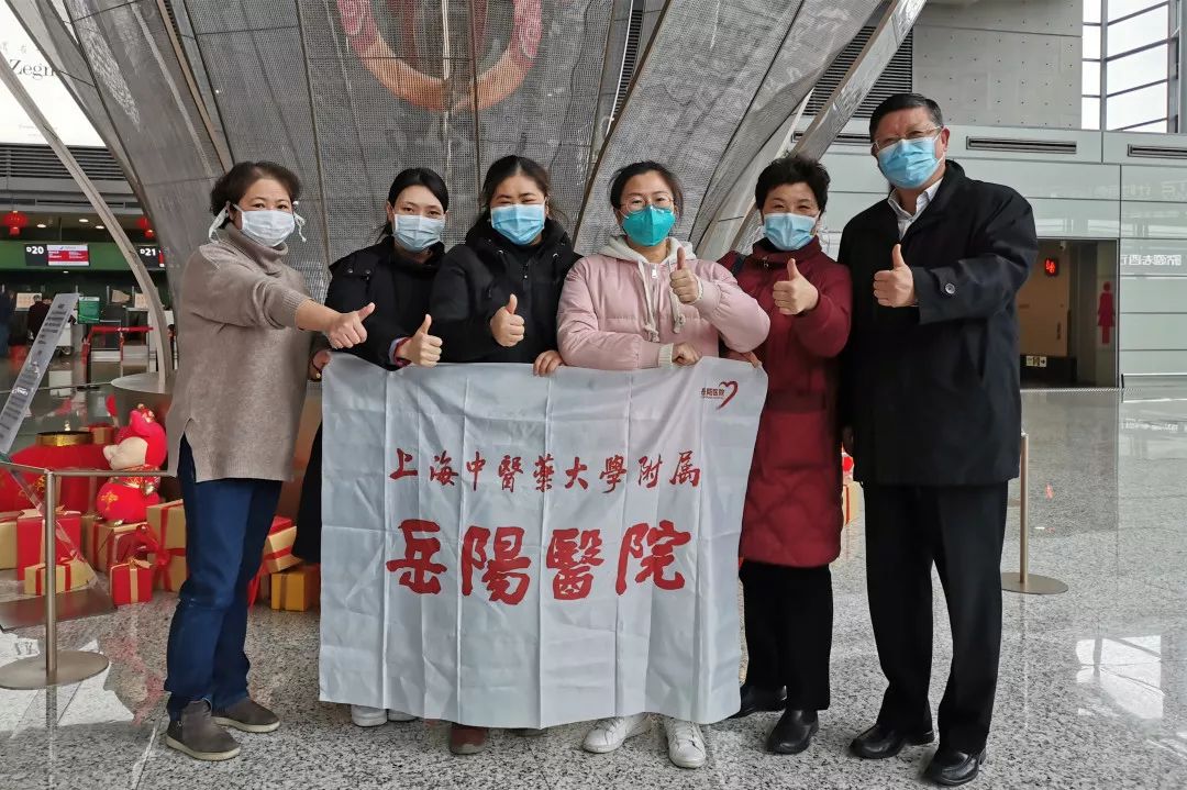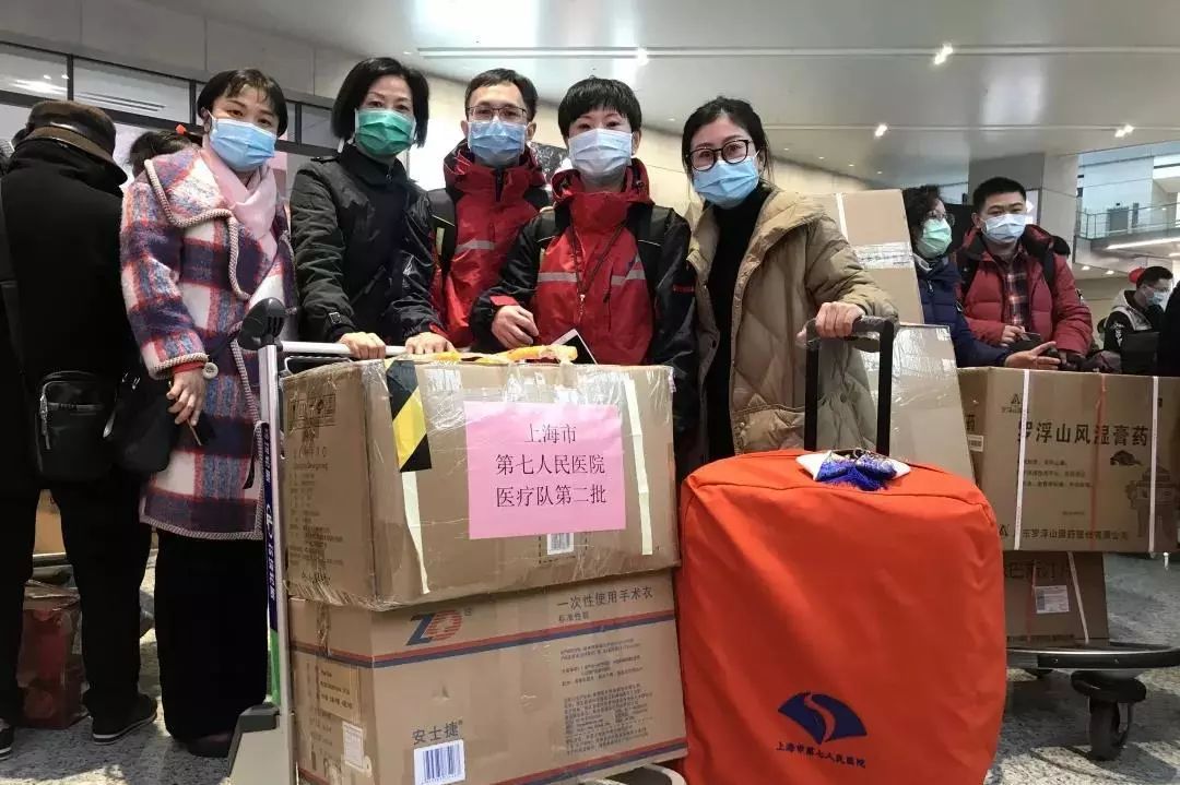 附属普陀医院第二批驰援武汉医疗队出征,队员为呼吸科主任王雄彪、感染科副主任严萍、检验科技师仇超勤、重症监护室护士范磊磊、张琴琳,以及呼吸科护士龚玥蕊。