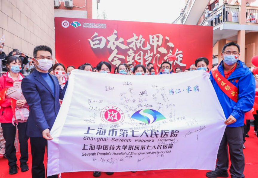 下午,援鄂医疗队平安回家欢迎仪式在第七人民医院举行。浦东新区卫生健康委副主任朱卫,浦东新区红十字会党组书记、常务副会长顾赛花,高桥镇党委书记张伟国、镇长黄克鹏等镇领导,第七人民医院党委书记徐玉英出席欢迎仪式。仪式由院长王杰宁主持。