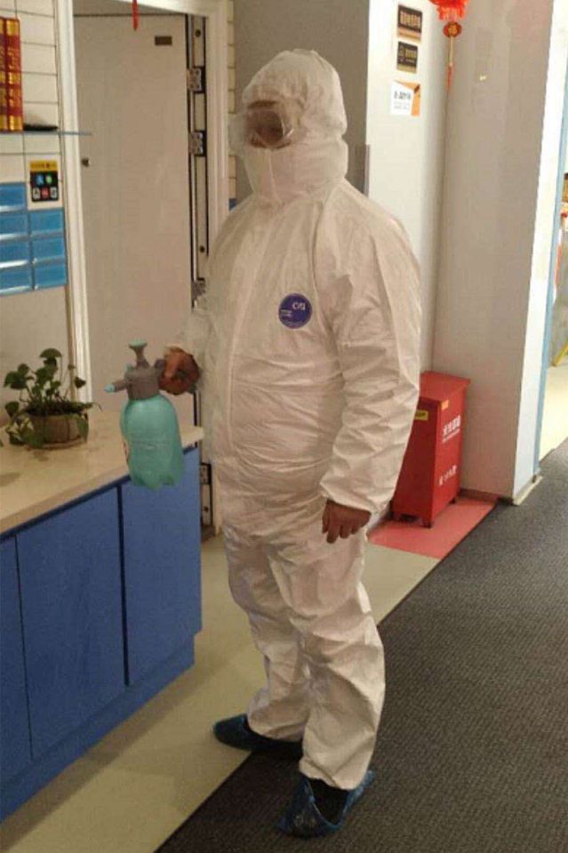 保洁人员为每个区域消毒