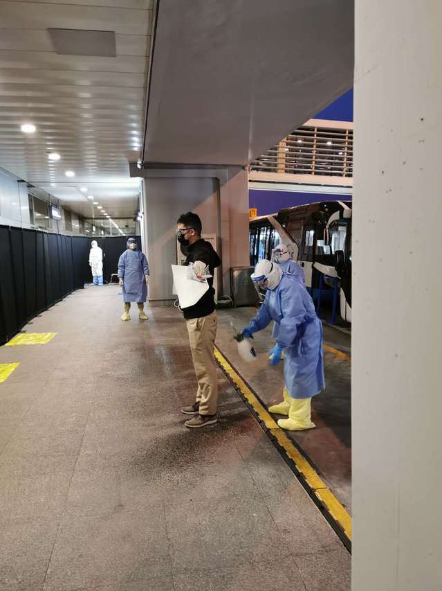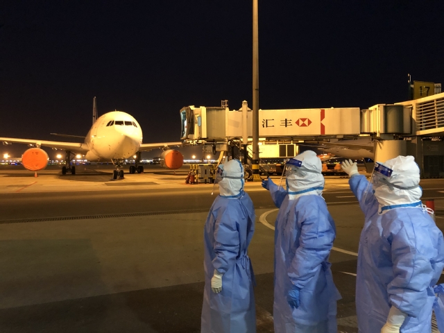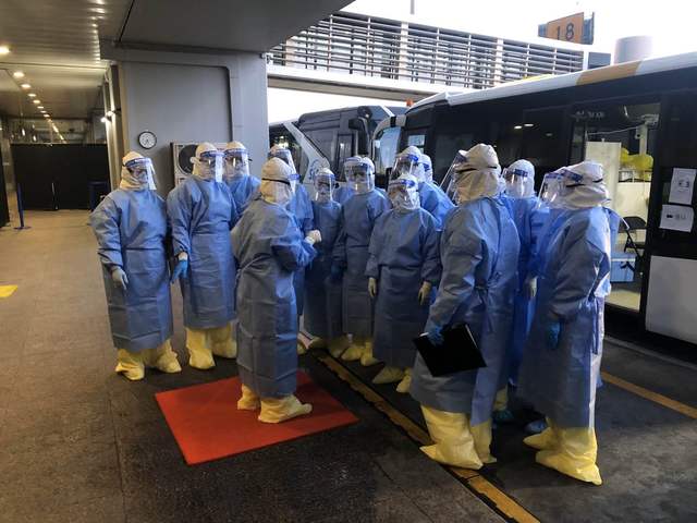 凌晨4点,队员们集合完毕,做好自身防护,等待5点半第一个航班