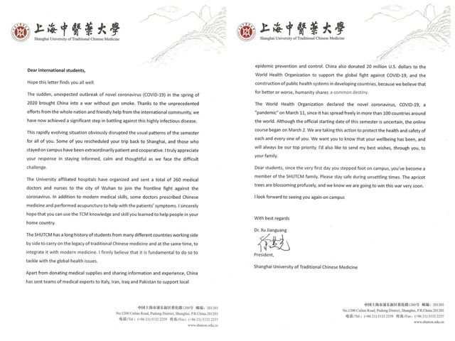 校长徐建光致信beat365国际学生