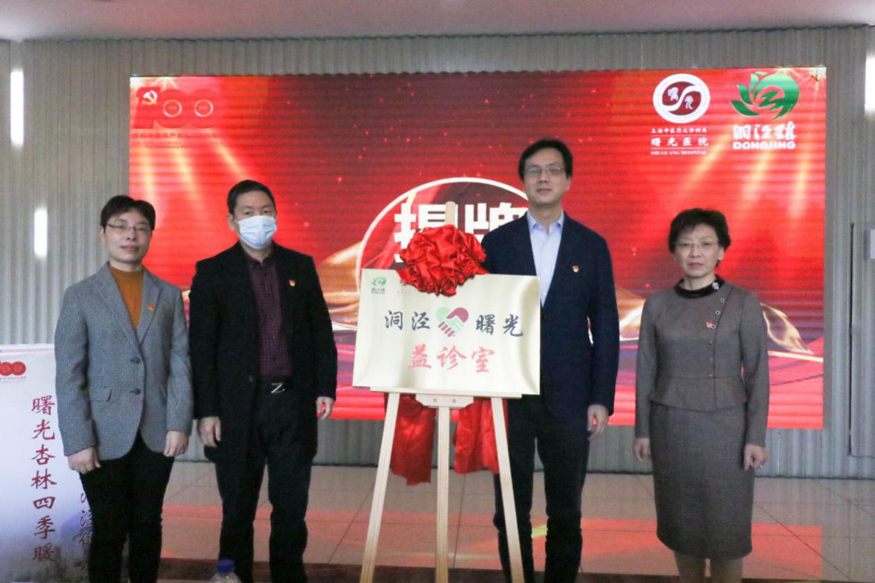 为了将党建共建协议落在实处,医院还将特色志愿服务品牌——“曙光益诊室”搬到洞泾百姓家门口。姚政与洞泾镇党委委员杜俊剑,洞泾镇社区卫生服务中心党支部书记张洁,平阳居民区党支部书记、居委会主任倪丹凤共同为“洞泾——曙光益诊室”揭牌。这是继3月16日浦东新区老港镇“大河——曙光益诊室”揭牌后,医院为助力国家健康乡村建设的又一力举。