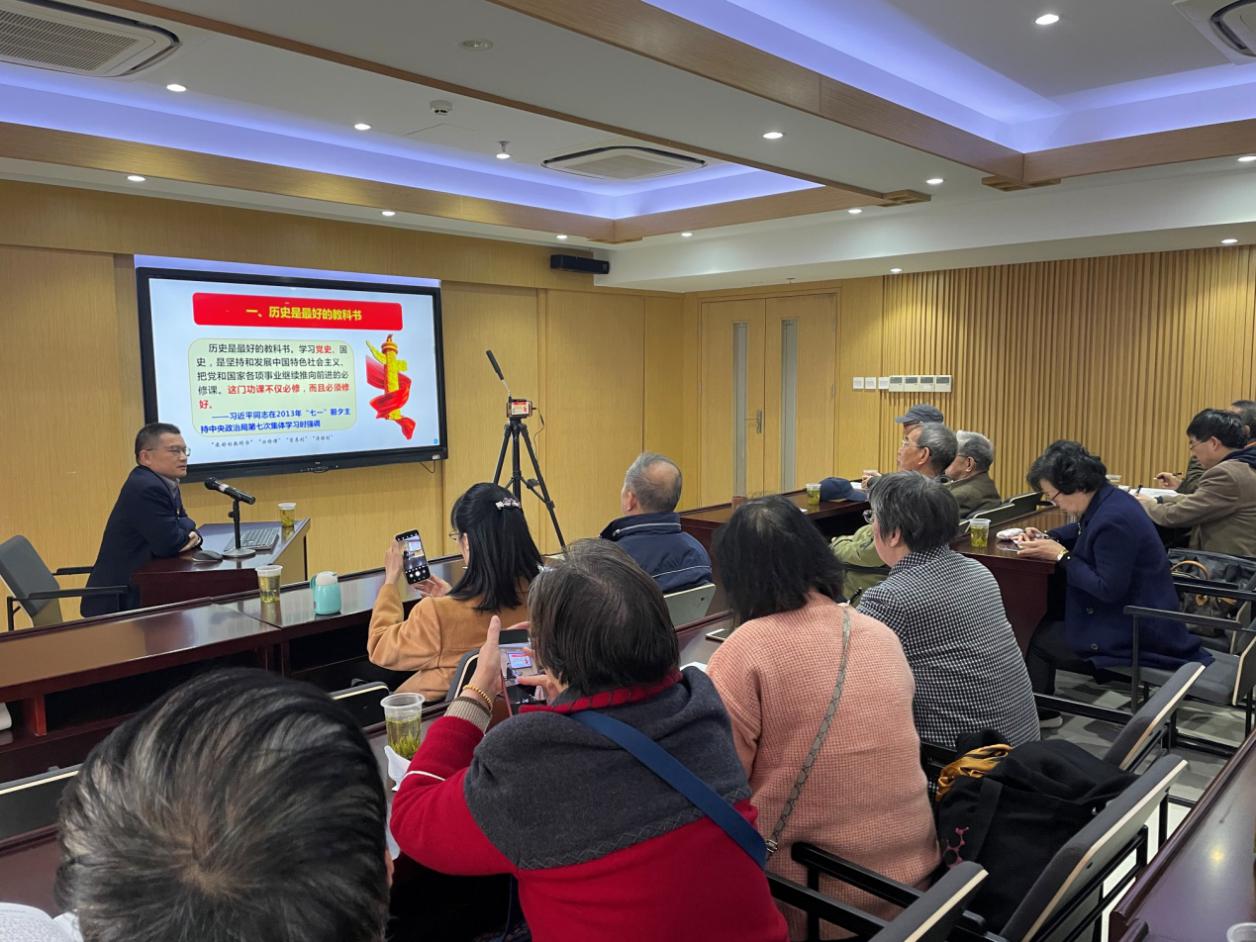 3月25日上午,离退休党组织党史学习教育党课系列活动第二讲在零陵校区307会议室举行。beat365马克思主义学院陈荣武教授受邀作题为“中国共产党建党100年来的伟大历程和基本经验”的报告。会议由退休党委书记顾家柱主持。