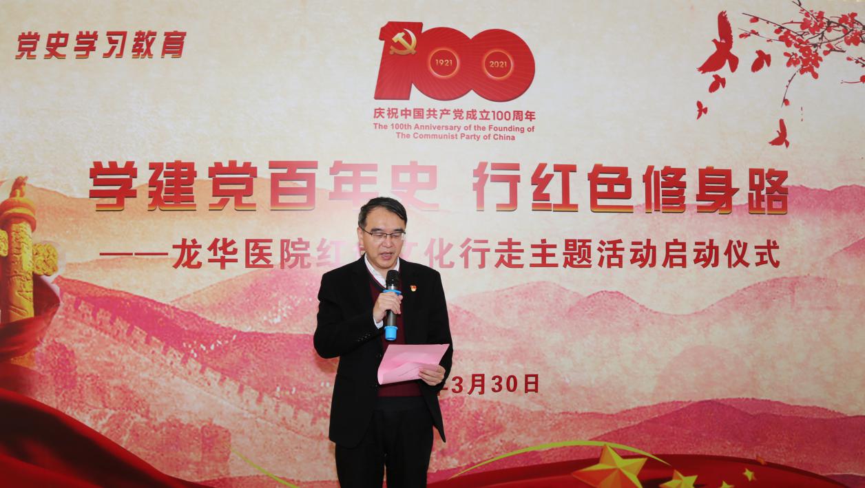 迎接中国共产党建党100周年,紧紧围绕党史学习教育要求,用好上海红色文化资源,附属龙华医院党委积极筹划开展红色文化行走主题活动,引领医院广大党员、职工、学生等学建党百年史,行红色修身路。3月30日中午活动启动仪式在医院杏庭举行,龙华医院党委书记刘胜,党委副书记、纪委书记高炬,党委副书记、副院长刘萍,党群部门负责人、党员代表等参加了启动会。