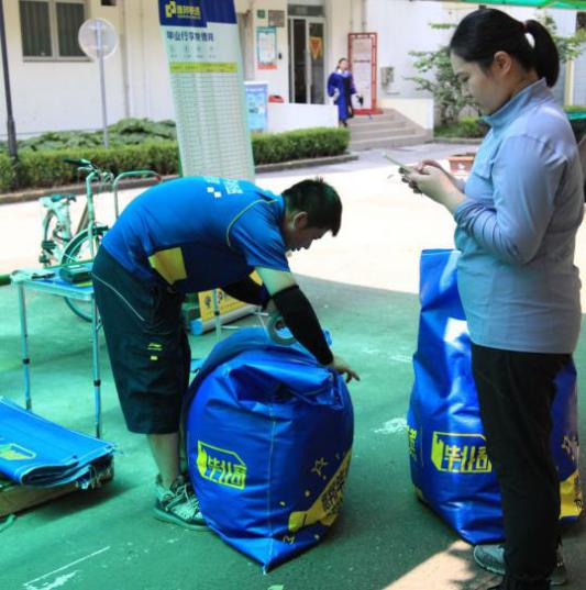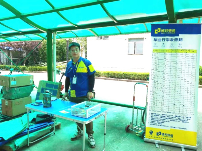 为方便毕业生打包邮寄行李物品,6月15日至7月7日毕业生离校期间,校后勤保障处联合德邦快递公司为学生们提供足不出园即可在公寓楼前将行李现场邮寄的服务。现场还免费提供小推车短驳服务,提供普通编织袋及打包服务,寄快递时凭本校学生证即可免费领取防水纤袋或纸箱一个。所有包装袋(箱)上均印有“毕业寄”定制专属logo,大件物品到达目的地后还可提供免费送货上楼,并为贵重物品提供保价服务。毕业包裹直通车价格优惠,流程极简,服务细致,真正为毕业生轻松离校提供便捷服务,得到学生们的欢迎和好评。