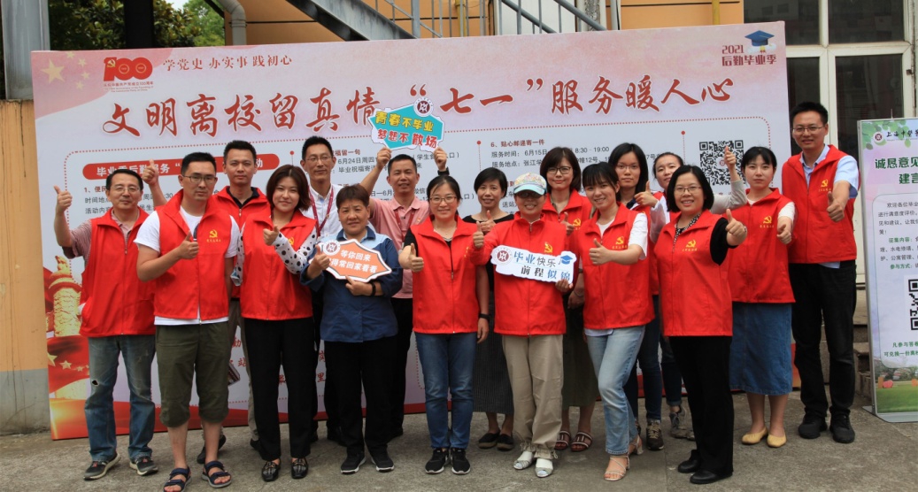 2021年毕业季,恰逢建党百年,为贯彻落实党史学习教育“我为群众办实事”实践活动要求,全心全意为毕业生“办实事、谋福祉、解难题”,6月24日至6月28日,校后勤保障党支部以主题党日、师生互动、志愿服务等形式开展服务育人“七个一”毕业离校系列活动。