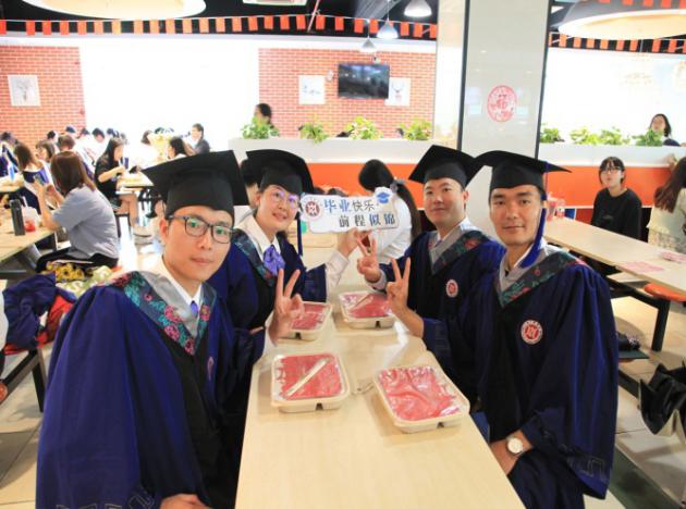 打开餐盒,精美别致的摆盘造型,色彩缤纷的食材组合,饱含寓意的菜品设计,充满惊喜:卤蛋烧肉(大展宏图)、糟溜鱼片(如鱼得水)、五彩炒素(前程似锦)、虾酱莴笋(一帆风顺)、鲜虾蒸饺(蒸蒸日上),再搭配一道五色花糕作为餐后甜点。可口美味的饭菜、设计精美的餐盒,每一处细节都体现了后勤服务人员对毕业生的用心与细心,寄托着母校食堂对广大毕业学子的衷心祝福及深切期望。