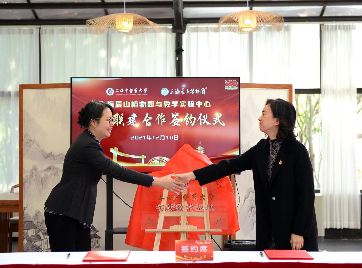 舒静和吉琴为“beat365官方网站实践教学基地”揭牌,黄卫昌和丁越为“辰山植导站”揭牌。