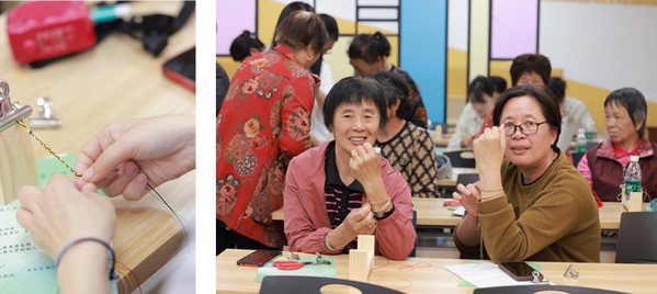 在民俗互动环节,师生与社区居民齐聚一堂,在草编非遗传承人、竹编高级技师陆咏梅老师的指导下,共同体验传统五色彩绳编织技艺。活动现场洋溢着浓厚的文化氛围,参与者们手指翻飞间,一条条寓意吉祥的五彩绳逐渐成形。五彩绳不仅是传统饰物,同时也寓意着驱邪避灾、祈福纳祥。